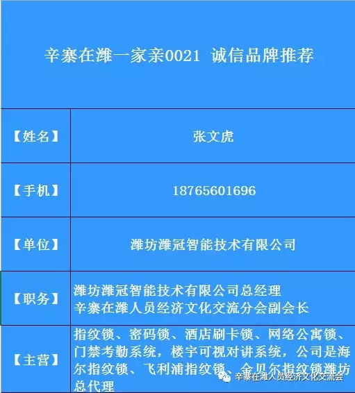 潍坊潍冠智能技术有限公司自2010年开始专业从事智能锁、智能家居、智能门控门禁系统、酒店智能化管理系统、企事业单位考勤系统等产品的销售、安装、维护服务,我们本着真诚服务到永远的经营理念,为客户提供最优质的安装方案和最舒适的产品体验,得到了广大客户的高度认可,同时在潍坊地区形成了良好的口碑。 潍冠智能锁得到了市场广泛的认可和良好的用户评价,产品销售及服务已覆盖全国。销售额逐年提高,已遥遥领先本地区同行业。 公司凭借多年来在智能门锁领域的成熟经验和影响力,成为海尔、飞利浦、金贝尔三大品牌潍坊区域总代理。 我公司依托优质的产品、贴心的服务,诚信经营,以满足客户为诉求,以获得口碑为业绩,是您值得信任的产品和服务提供商,是您选购智能门锁的首选商家。 辛寨在潍人员福利: 1、承诺免安装费、终身免费换电池、三年超常质保; 2、购买店内产品八折优惠; 公司直营店地址: