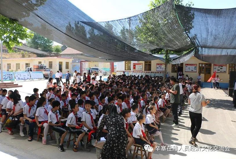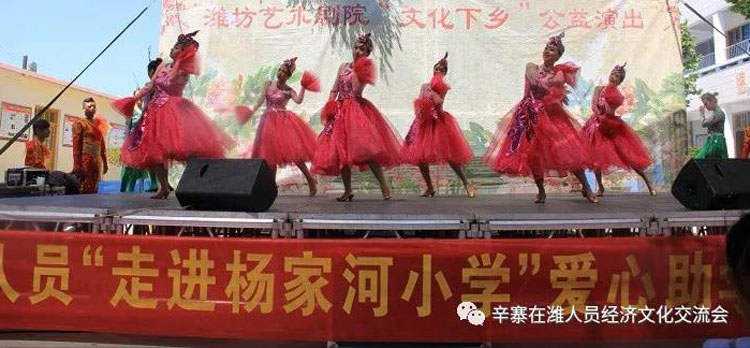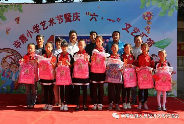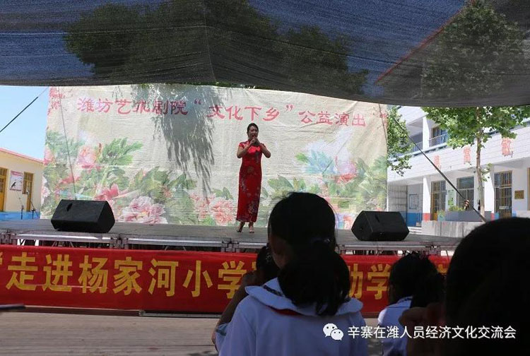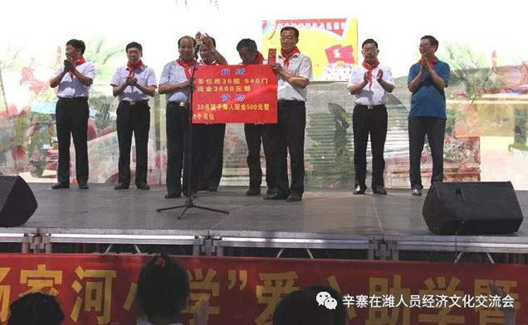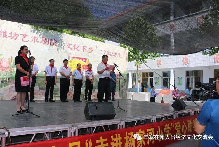 辛寨镇杨家河小学张新林校长致感谢词! 在县教育局和镇党委、政府关心支持下,同学们已于数年前搬进了新教学楼,因学校资金不足,各项设施有待完善,给同学们的学习、生活带来不便;当得知学校的困难后,辛寨在潍工作人员伸出援助之手,带着辛寨在潍工作人员的涓涓爱心来到了活动现场,为学校捐赠540节储物柜、资助20个家庭困难儿童每人500元现金、1个书包,3600元现金用于学校!以解决学校的燃眉之急。打听到朱家裕张玉书家庭确实因事致贫,特此拿出2000元钱由管区书记代为把关,确实用在孩子身上!潍坊艺术剧院的艺术家们在尹文军院长的带领下给大家带来了精彩的演出。这是继去年“六一”辛寨中心幼儿园捐赠仪式后带着浓浓的爱心第三次来到家乡,今年的“六一”儿童节不仅是一次文艺盛会,更是一次爱心捐赠,温暖接力。