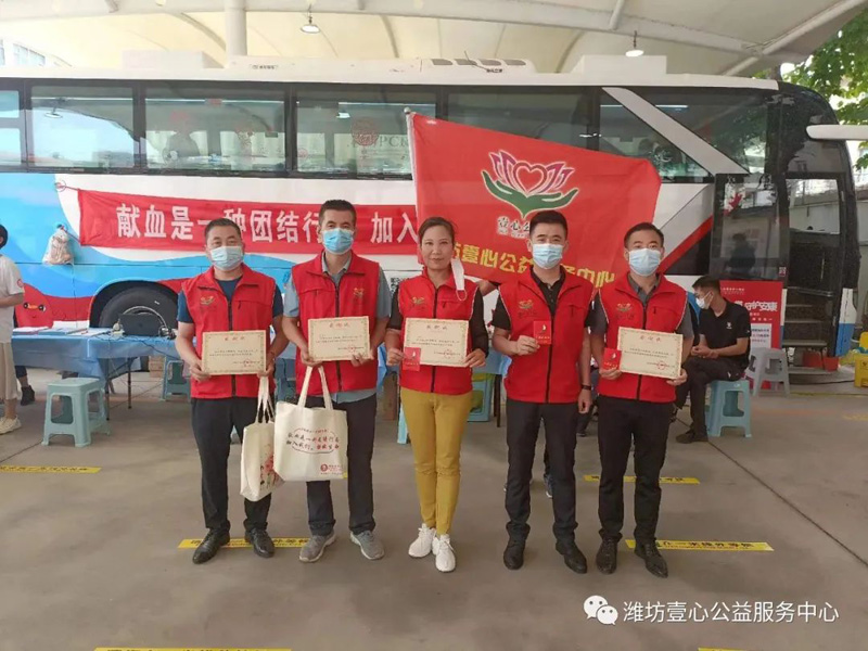 6月14日,第十九个世界献血者日之际,潍坊市中心血站开展“献血是一种团结行为,加入我们,拯救生命”世界献血日主题活动。潍坊壹心公益服务中心10名志愿者参与本次活动,其中5名志愿者进行了无偿献血。