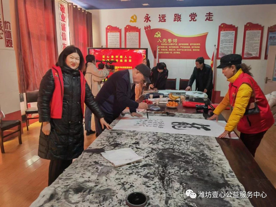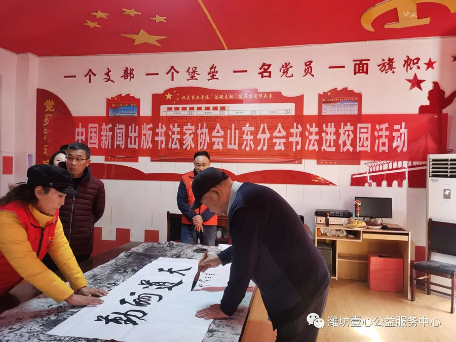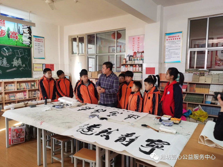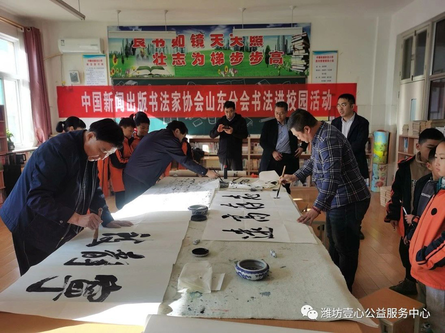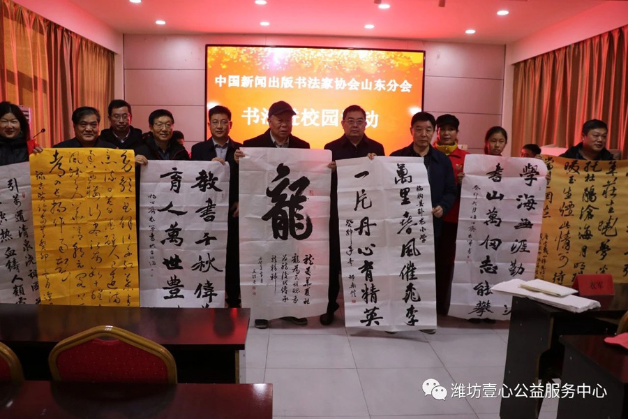 辛寨街道卧龙小学始建于1994年,2014年迁址于卧龙工业园盛建路1177号新建。学校服务33个村,服务人口28000人,现有62名教职工,在校生892名,共24个教学班。班级学生主要以农村儿童为主,其中不乏有因事致贫家庭学生,和学校充分了解和沟通后,11月24日上午,潍坊壹心公益服务中心联合潍坊市广播电视台新媒体中心和中国新闻出版书法家协会山东分会在顾问刘洪清先生、王继东、邢乐信、和谭佃贵的带领下到临朐县卧龙小学进行爱心捐赠和书法进校园活动。