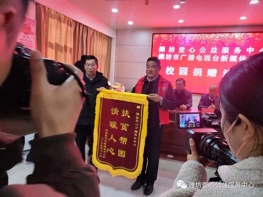 潍坊壹心公益服务中心理事长李成强不胜感慨, 人们常说“社会多一份关爱,孩子就多一份信心,我们的未来就多一份希望”。爱心是一抹冬日的阳光,使寒冷的人感到人间的温暖;爱心是沙漠中的一泓清泉,使失去信心的人重新看到生活的希望。捐赠者善心如水,一定会滋润学校孩子们干渴的心田。赠人玫瑰,手有余香,当人们的真情传给了真正需要的人时,这带去的一份希望,一份关怀也进一步体现了推动社会和谐、发扬友爱互助的传统美德和心系社会无私奉献的雷锋精神!