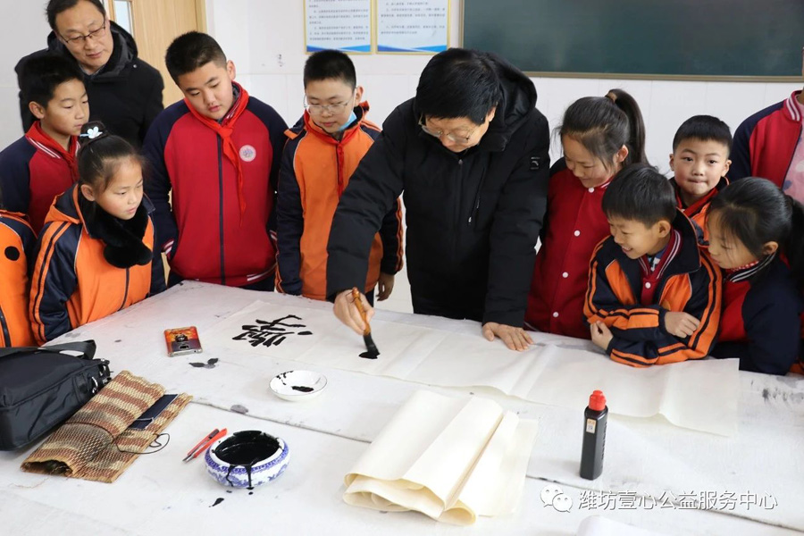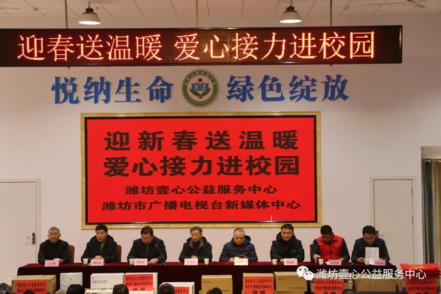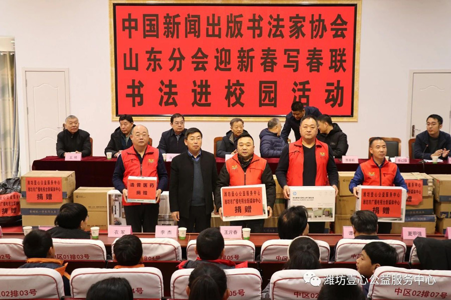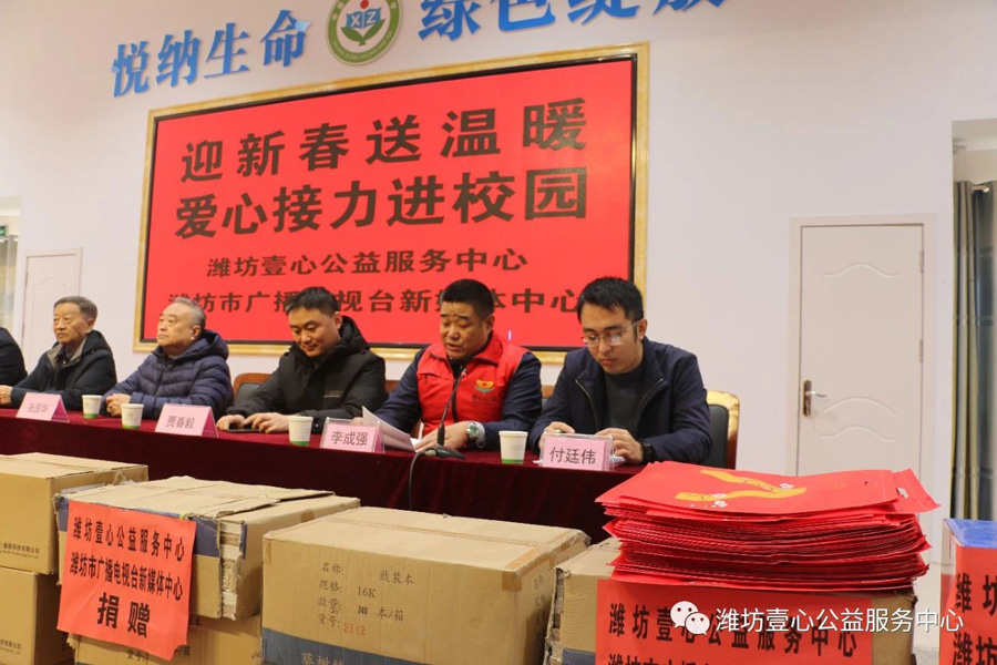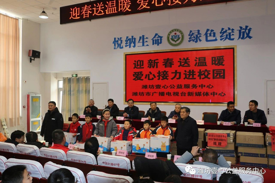 “扶贫济困,爱心助学,传递的是爱心,营造的是希望。”12月19日上午,潍坊坊壹心公益服务中心联 合潍坊市广播电视台新媒体中心和中国新闻出版书法家协会山东分会在潍坊市委原常委、市委原秘书长李光信,潍坊 市委原副秘书长张国华,潍坊市人大原常委邢乐信,潍坊市委办公室原副主任王琦带领下走进临朐辛寨街道辛寨小学 ,进行“迎新春送温暖,爱心接力进校园”活动。