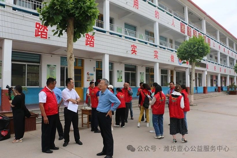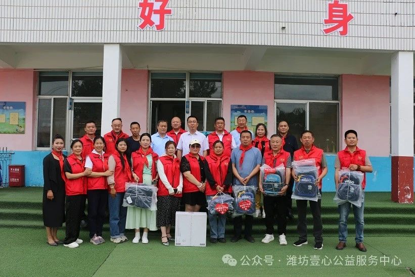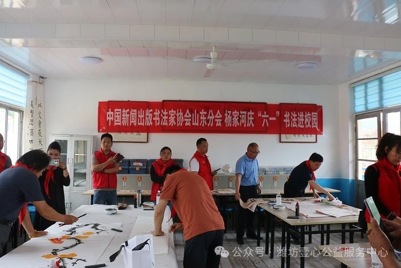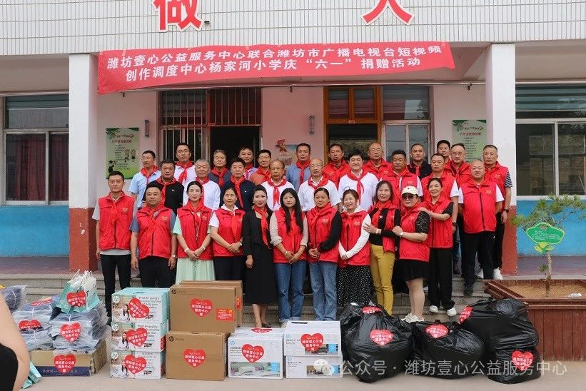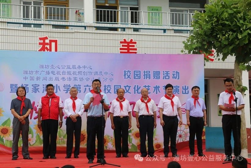 5月30日上午,潍坊壹心公益服务中心联合潍坊市广播电视台短视频创作调度中心和中国新闻出版书法家协会山东分会的书法家以及壹心公益服务中心的志愿者们在潍坊市委原常委、军分区原政委刘洪清,潍坊市人大原常委、中国新闻出版书法家协会研究员邢乐信,潍坊市人大原常委王永福,潍坊市委原二级调研员王琪四位老领导的率领下,带着对杨家河小学和幼儿园同学们的深情厚意,带来了电脑、复印机,练习本和体育用品等,还给因事致贫学生发放了救助金,捐赠价值共计四万多元。