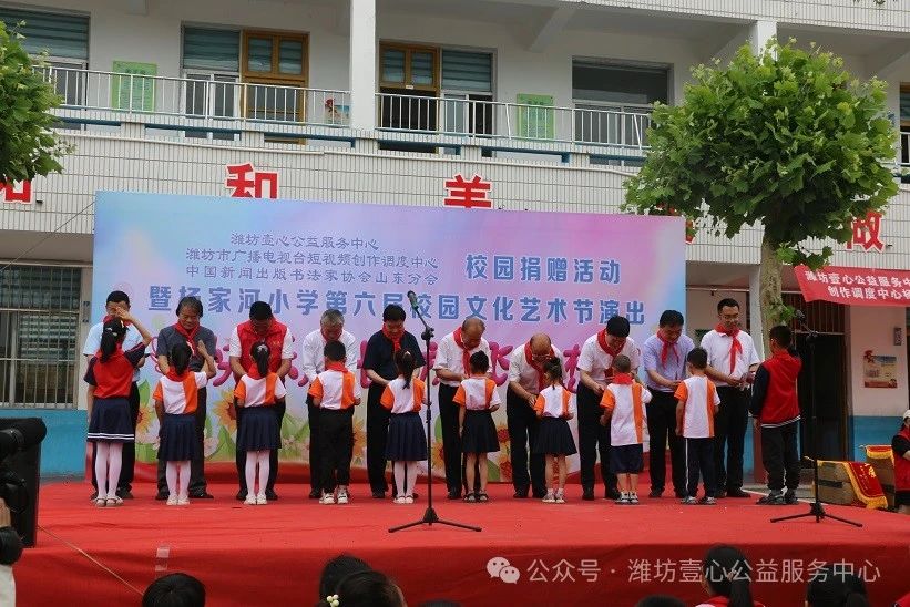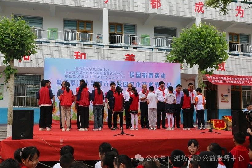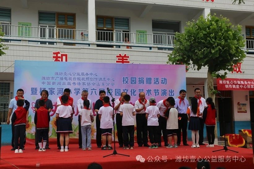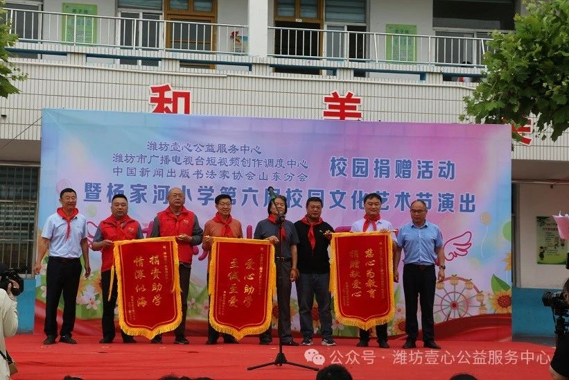 教育是民族振兴、社会进步的重要基石,是功在当代、利在千秋的德政工程。近年来,街道全面贯彻党的教育方针,牢固树立“兴教育就是兴民生,抓教育就是抓发展,强教育就是强未来”的理念,以教育高质量发展为主线,坚持幼、小、初一体发展思路,五育并举、全面育人,千方百计加大教育教学投入,优化资源配置,改善办学条件,全力打造区域一体、协同发展、优质均衡、生机盎然的绿色教育生态,街道教育事业实现全面快速发展。自去年以来,街道各中小学、幼儿园先后获得市级奖励23项、县级奖励58项,辛寨教育工作得到了社会的广泛认可。 百年大计,教育为本。今天,各位领导对杨家河小学的爱心捐赠,不仅是领导们对教育事业发展的真情奉献,也是对学校和孩子们的关心与厚爱;不仅是对街道教育工作的肯定,更是对我们肩负重要责任的激励。你们用温情点燃了寒门学子求知探索的希望,用爱心呵护了留守儿童渴求温暖的心灵,用慰藉和鼓励托起了他们勇毅笃行、弘德拓新的美好明天。你们的无私奉献更加激发了我们的热情和动力,继续为教育事业贡献力量。在这里,再次向你们表示衷心的感谢! 善举创造和谐,爱心传承美德。希望同学们自强不息、发奋学习,老师们持续钻研、诲人不倦。我们将谨记各位领导、各位来宾的深情厚谊,积极创造有利条件,把这份关爱化为前进的动力,以更加饱满的热情,更加务实的作风,推进辛寨街道教育事业繁荣发展。 潍坊壹心公益服务中心理事长李成强对同学们表达了殷切的期望:值此第七十四个“六一”国际儿童节马上来临之际,潍坊壹心公益服务中心联合潍坊市广播电视台短视频创作调度中心和中国新闻出版书法家协会的书法家们,带着对杨家河小学和幼儿园同学们的深情厚意,带来了四万多元的办公物资和学习体育用品,为你们加油,为你们助力!