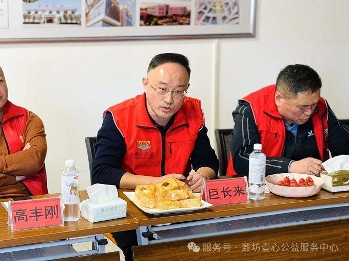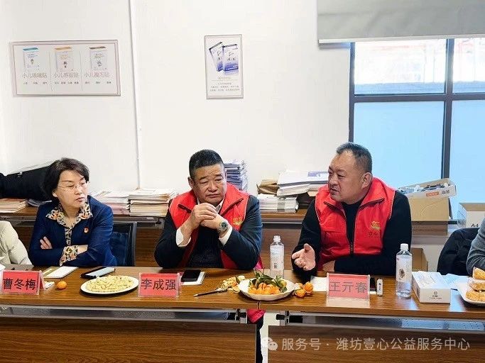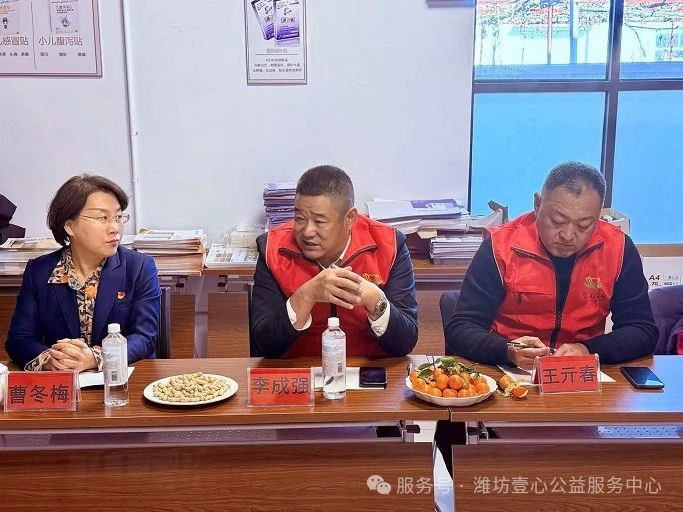 理事长李成强详细汇报了潍坊壹心公益服务中心成立以来做的公益活动,就当前遇到的问题向曹书记做了汇报,曹书记让同行的陈丹主任和王红杰主任进行了分析和汇总,曹书记做了详细解读,提出不要满足于现在所做的公益活动,要结合实际创建自己的项目。
